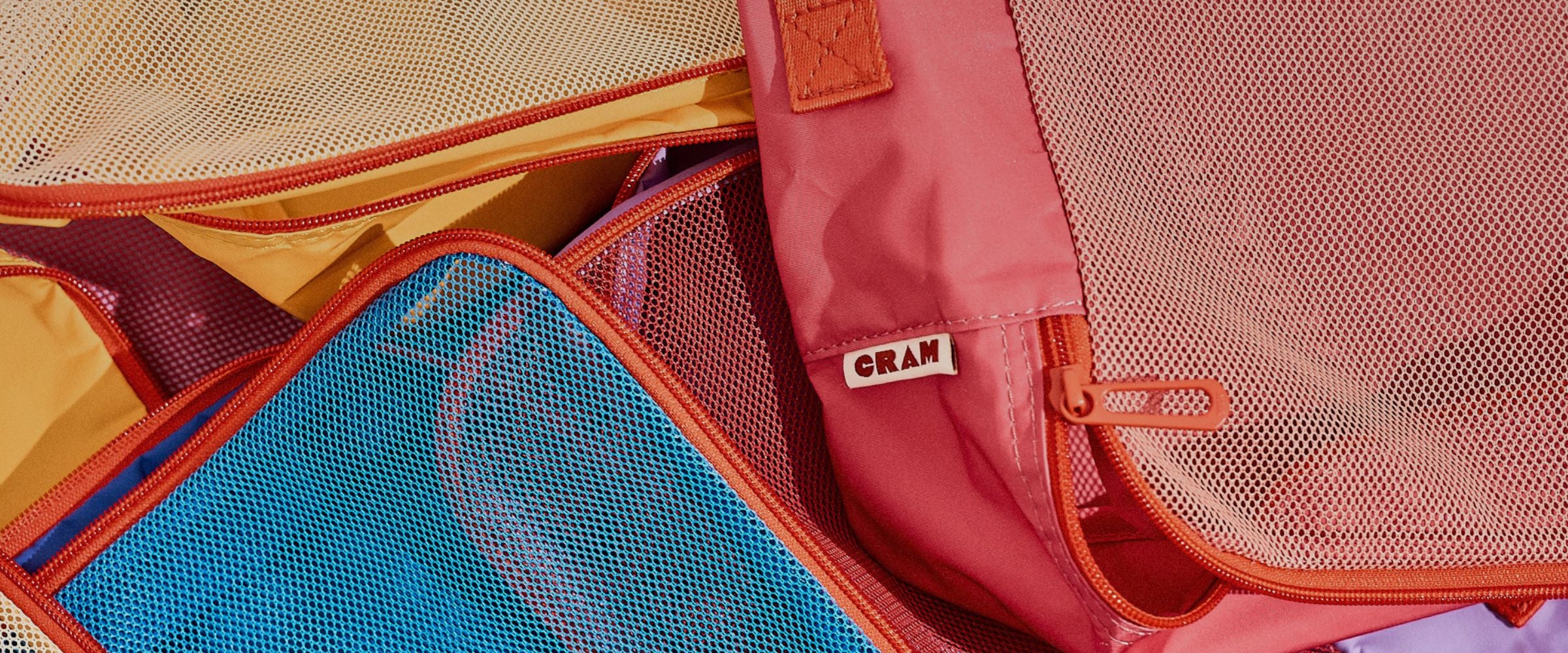 Meet Cram’s signature packing cubes — the colorful, machine-washable travel organizers made from 100% recycled fabric. Built to keep your suitcase perfectly sorted with breathable mesh tops, they make packing easier, brighter, and more sustainable. Durable enough for years of trips and thoughtful enough to gift, they’re a small upgrade that makes every journey feel smoother.